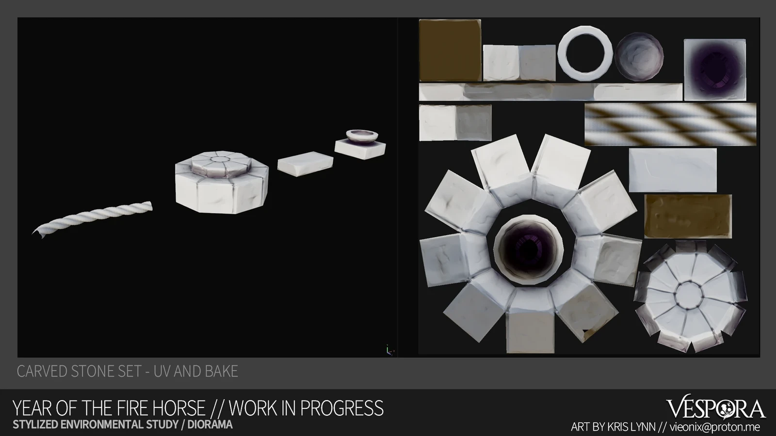 Week 4 and done! I had plans to do SO much more with this, but that's the benefit and the drawback of strict deadlines. This project really pushed my limits as far as capability and technical skill, and while I would like to go back and make another refinement pass on the painting especially, I am very happy with what I was able to achieve in 4 short weeks with another job and obligations. Thanks for coming along on the journey with me!