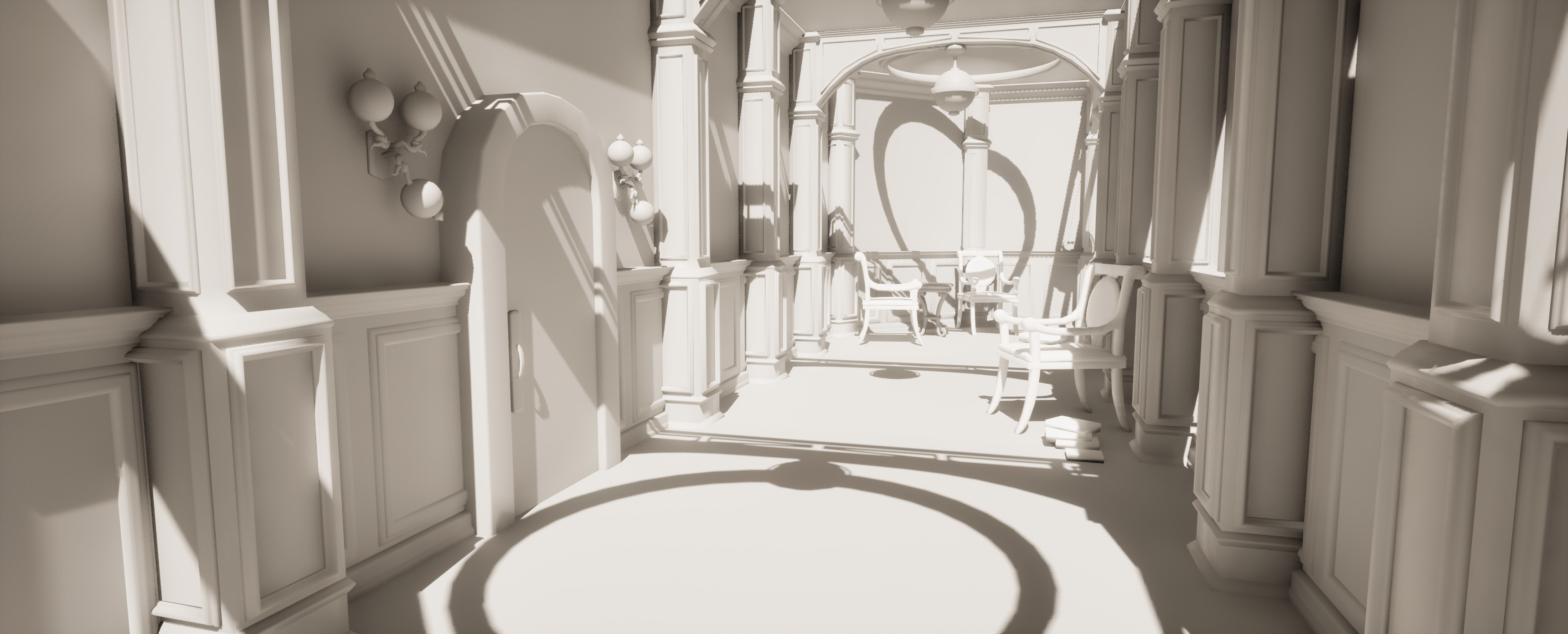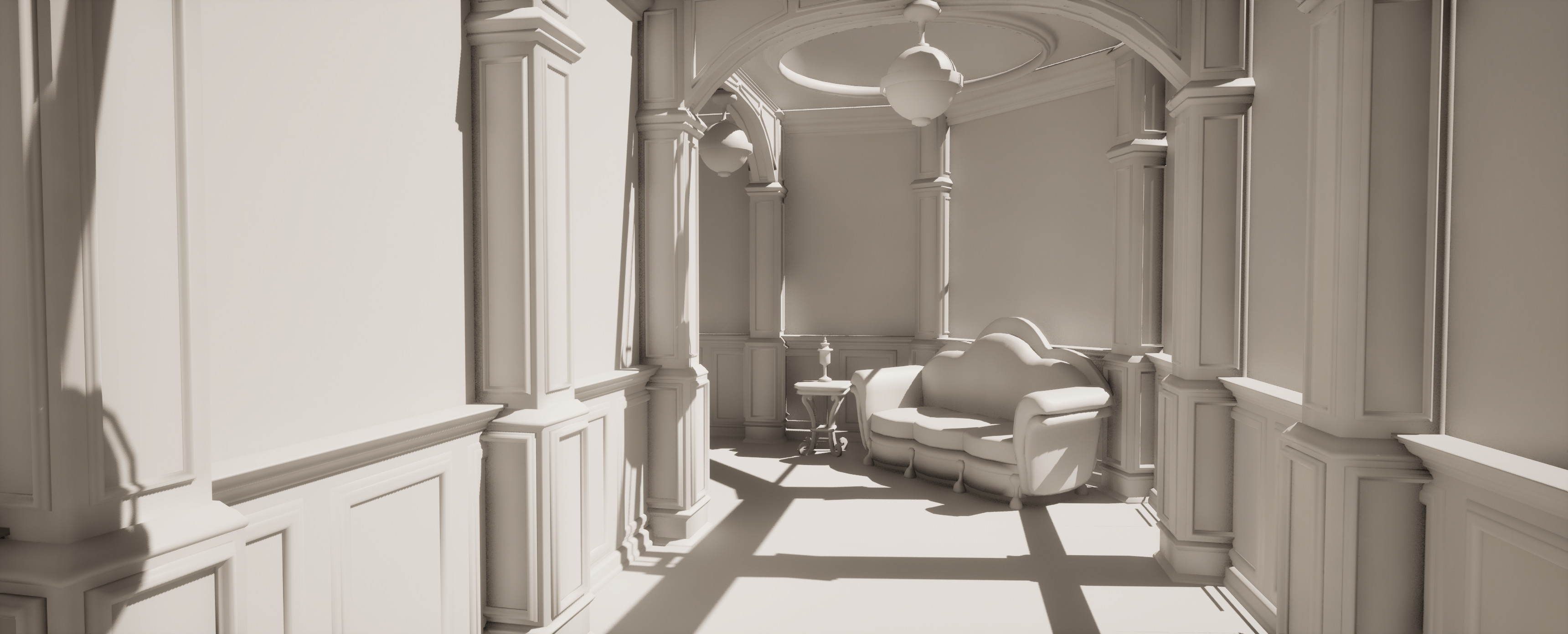 This was a 4-week project focused on practicing building modular assets for a playable game environment in Unreal Engine. The modeling & texturing was completed in ~2 weeks, with the final lighting and rendering done at a much more relaxed pace in 2 weeks. This was an immensely valuable learning exercise - I got a lot of practice creating materials in Unreal Engine, which supported RGB mask filters and customizable asset colors in-engine. For example, the sofa cushions, the chair cushions, and the wallpaper were all customizable in-engine.